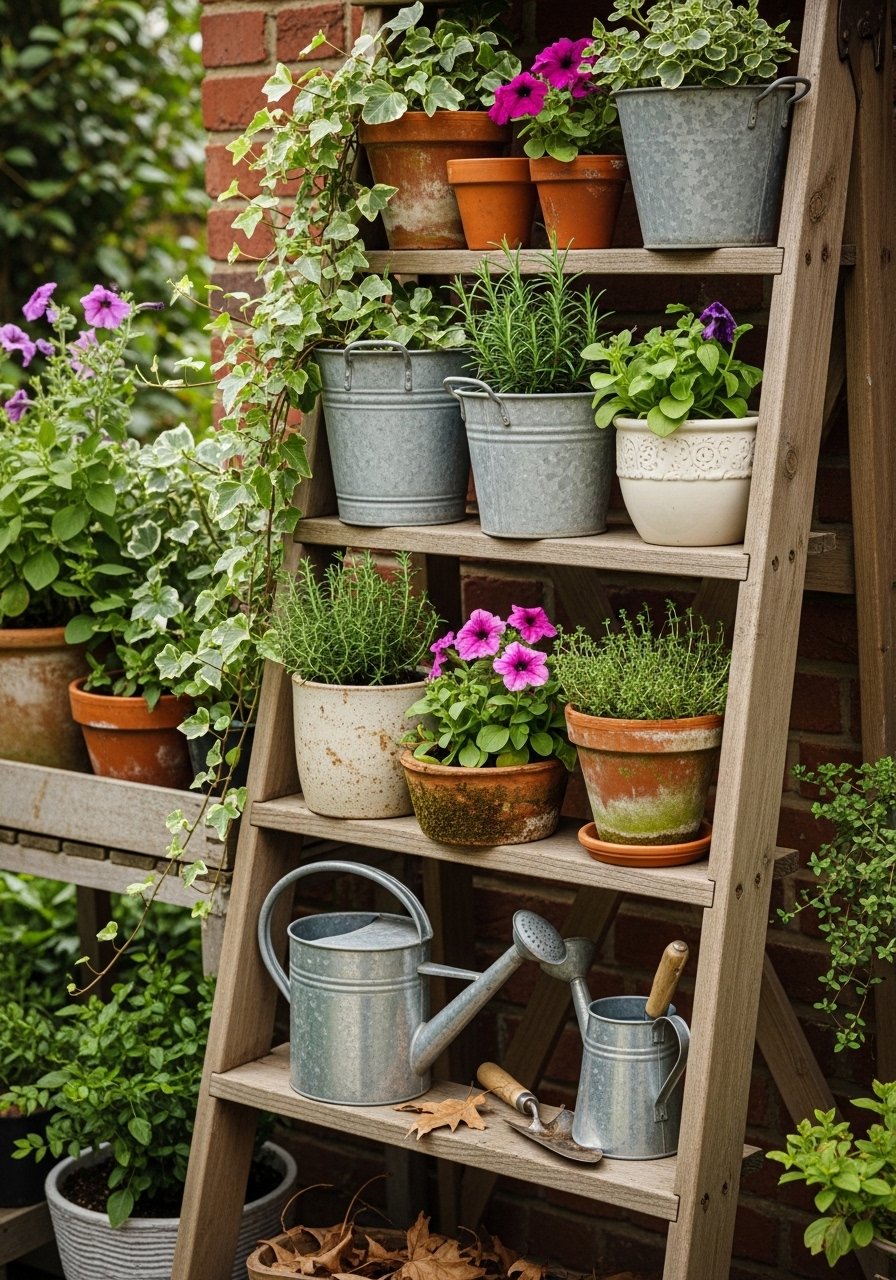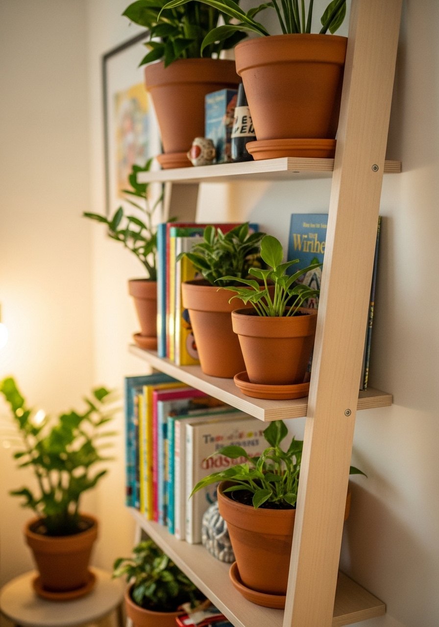 14. Narrow Ladder Shelf for Plants and Books