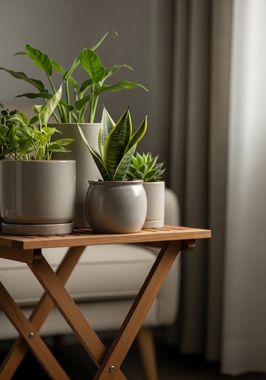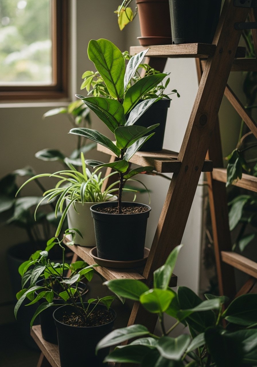 I stopped cluttering shelves and let a tall plant anchor a corner. It draws the eye up and adds life without taking width.