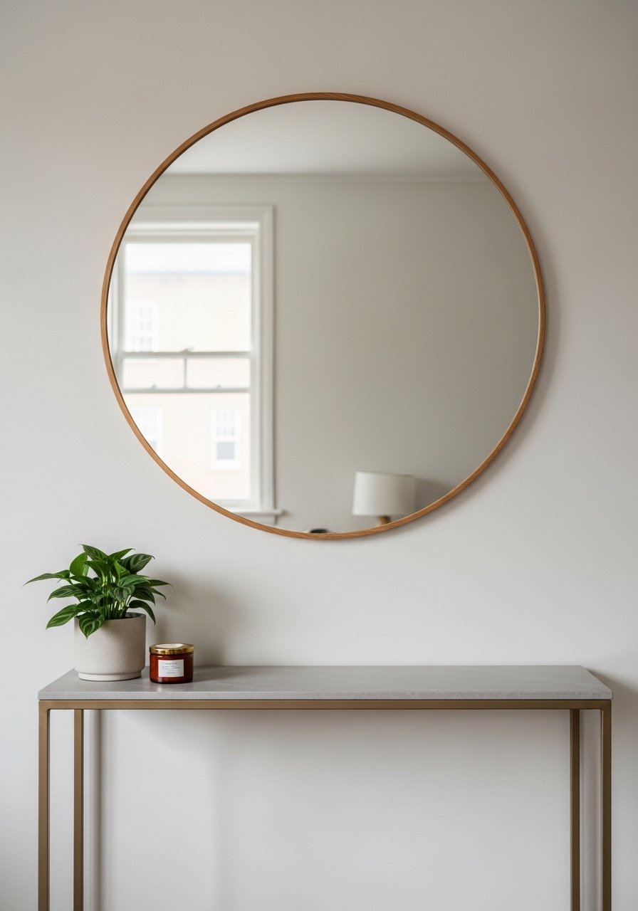 A round mirror made my narrow living room feel twice as deep. It reflects light and hides the room edges.