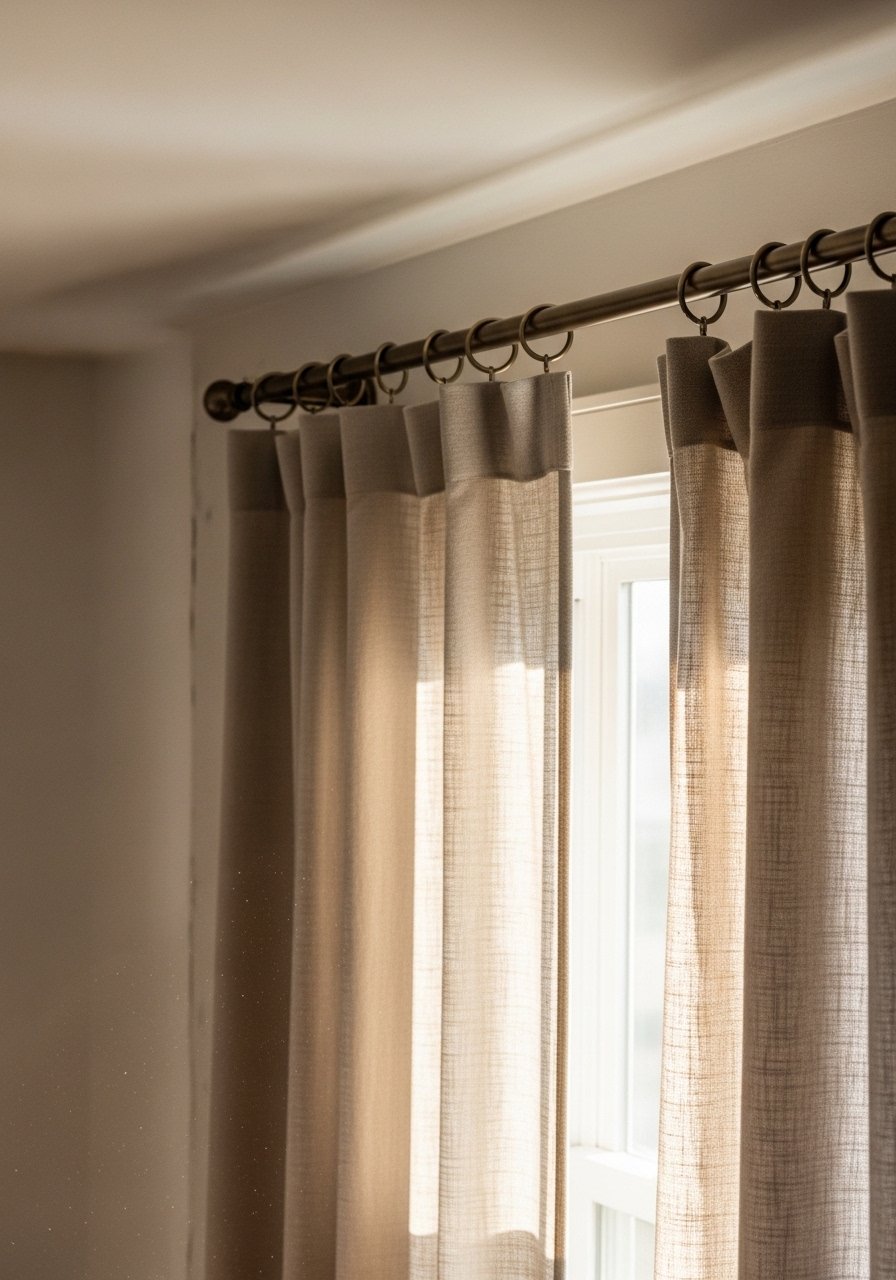 15. Curtains Hung High to Lengthen Walls