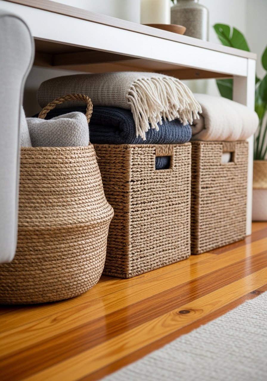 23. Keep Clutter Contained with Decorative Baskets