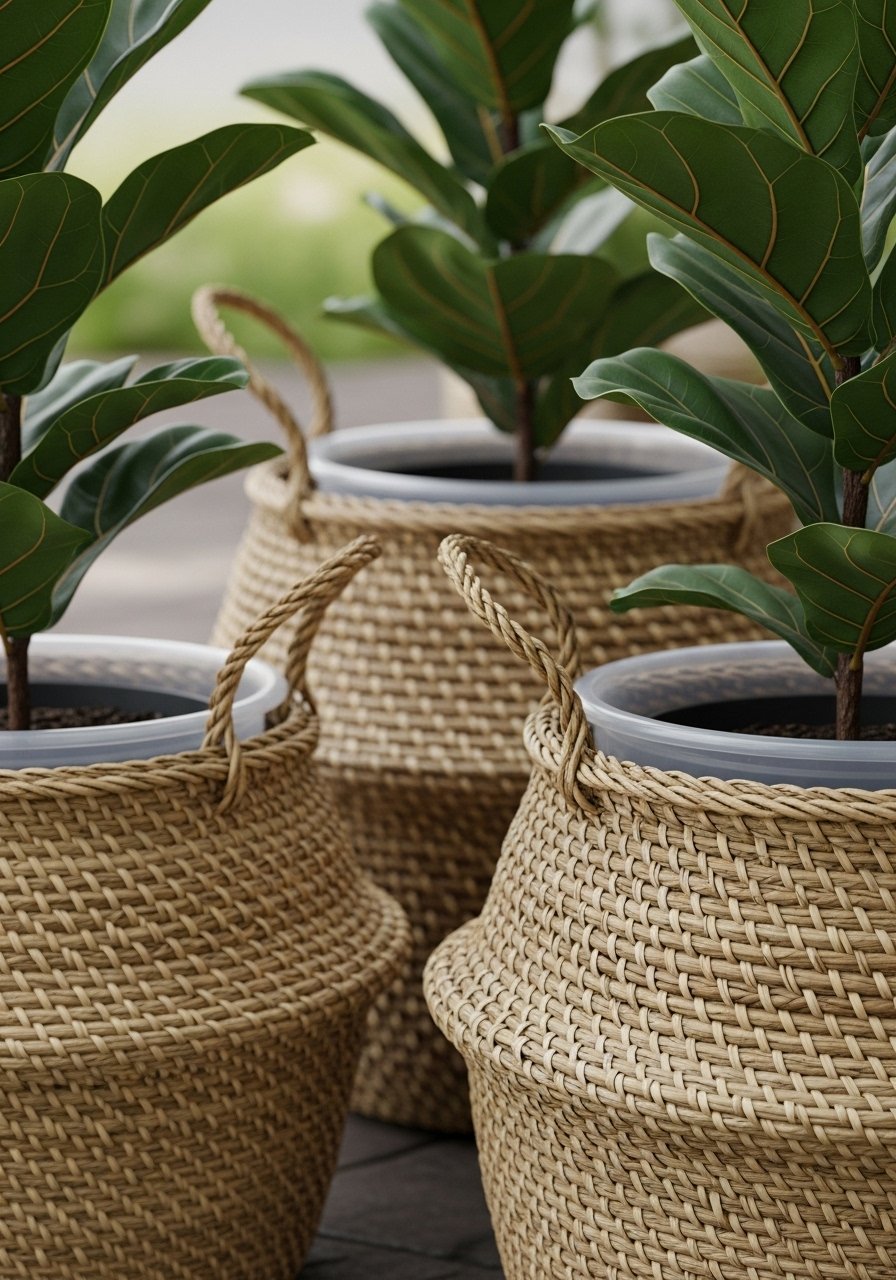 I aim for a light base — soft walls, natural rug, neutral upholstery. That keeps the room feeling open. Then I add texture with woven baskets, a linen throw, and terracotta or ceramic pots.